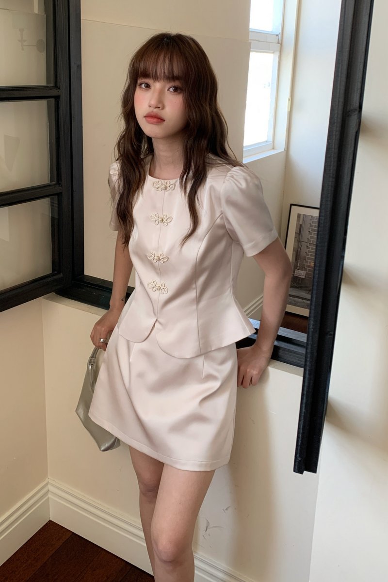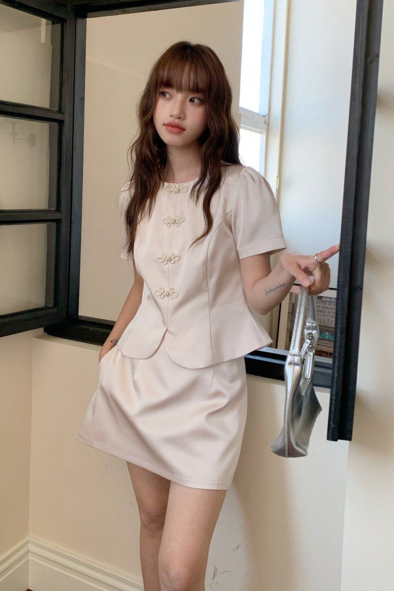 Fú Satin Skort in Champagne