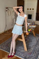 Miu Ribbed Skort in Blue