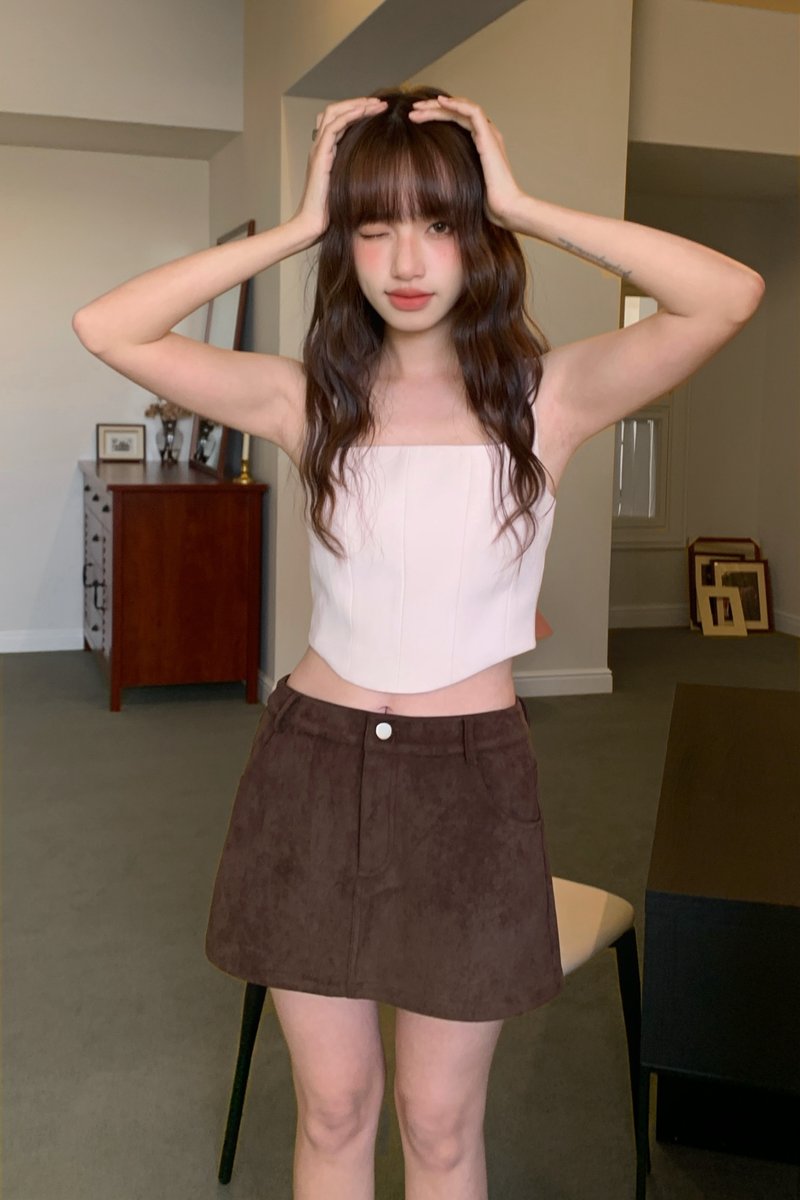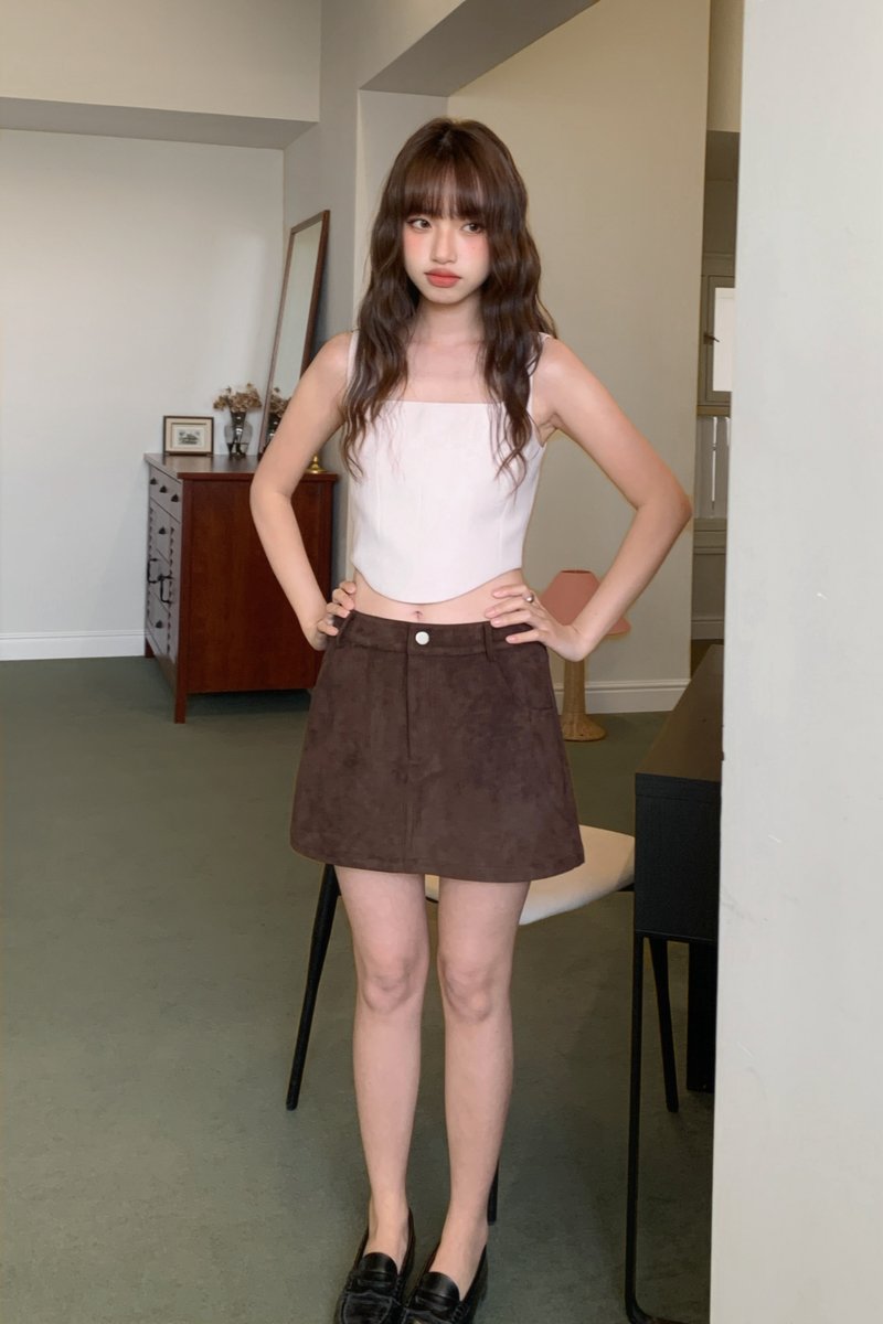 Molly Faux Suede Skirt in Brown