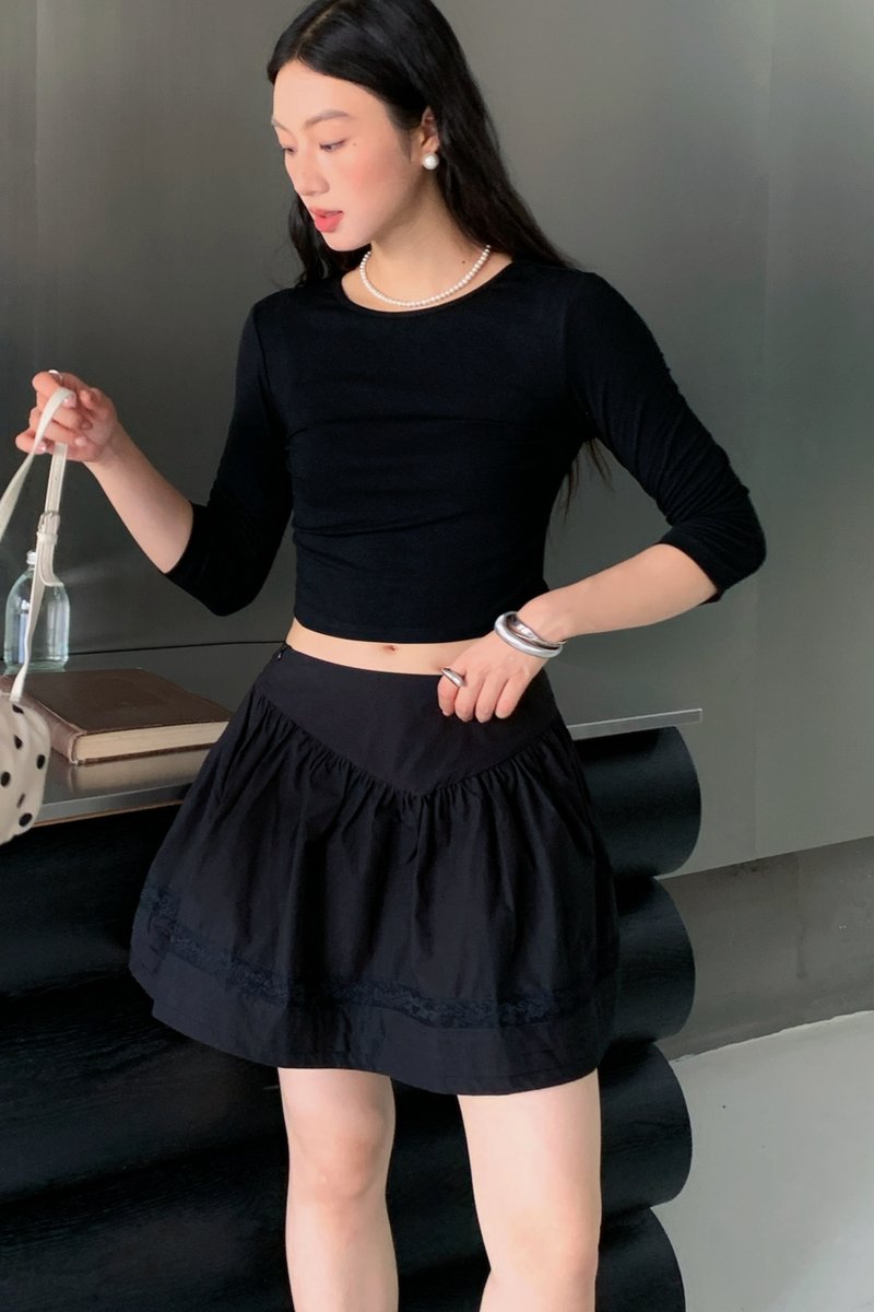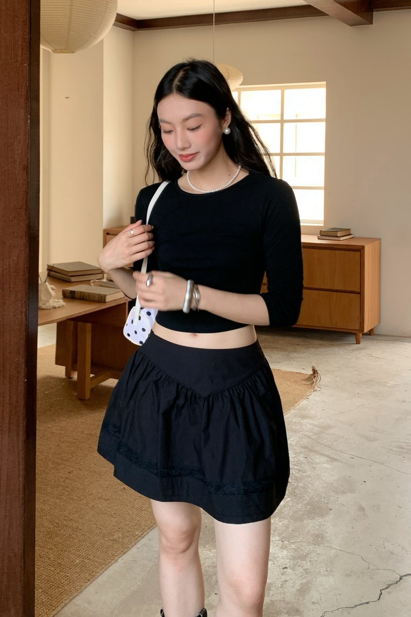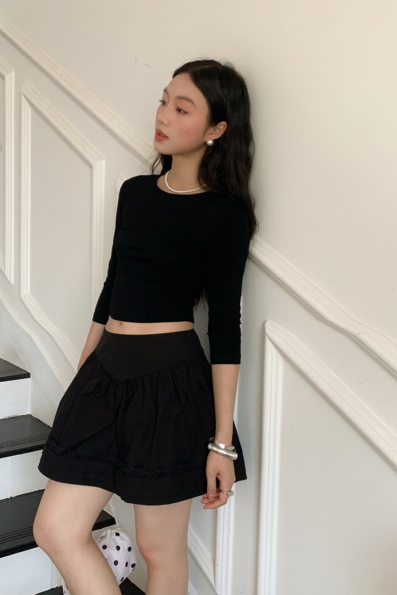 Shirring Culottes Skirt in Black