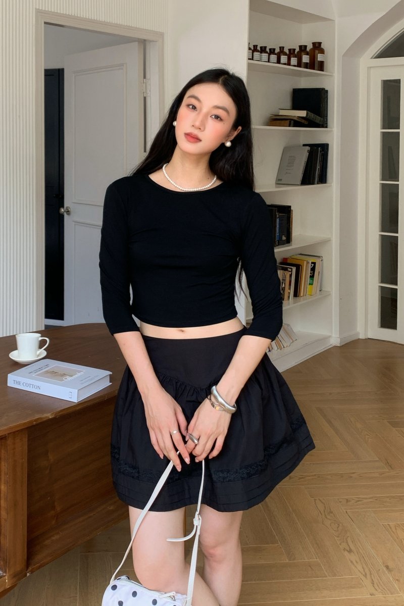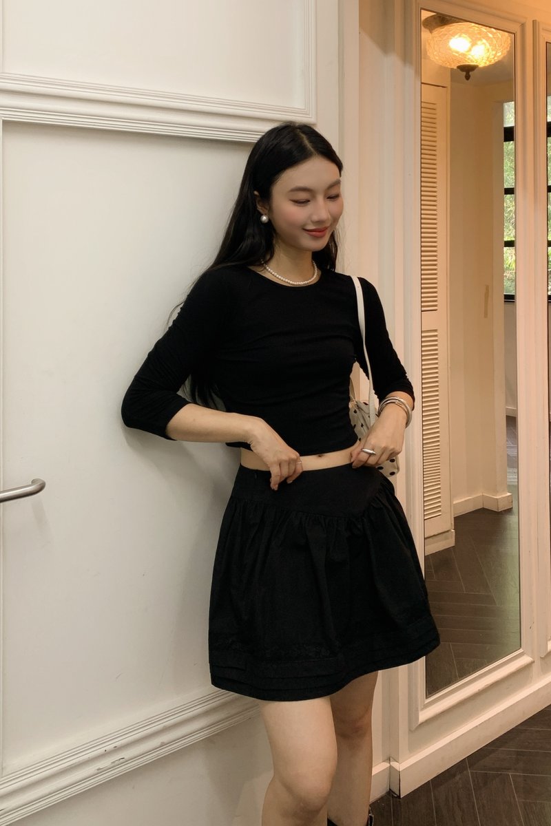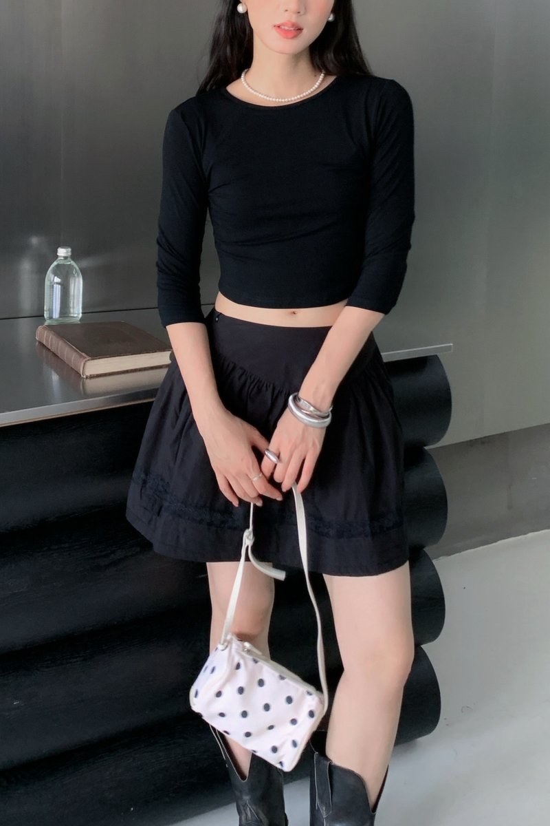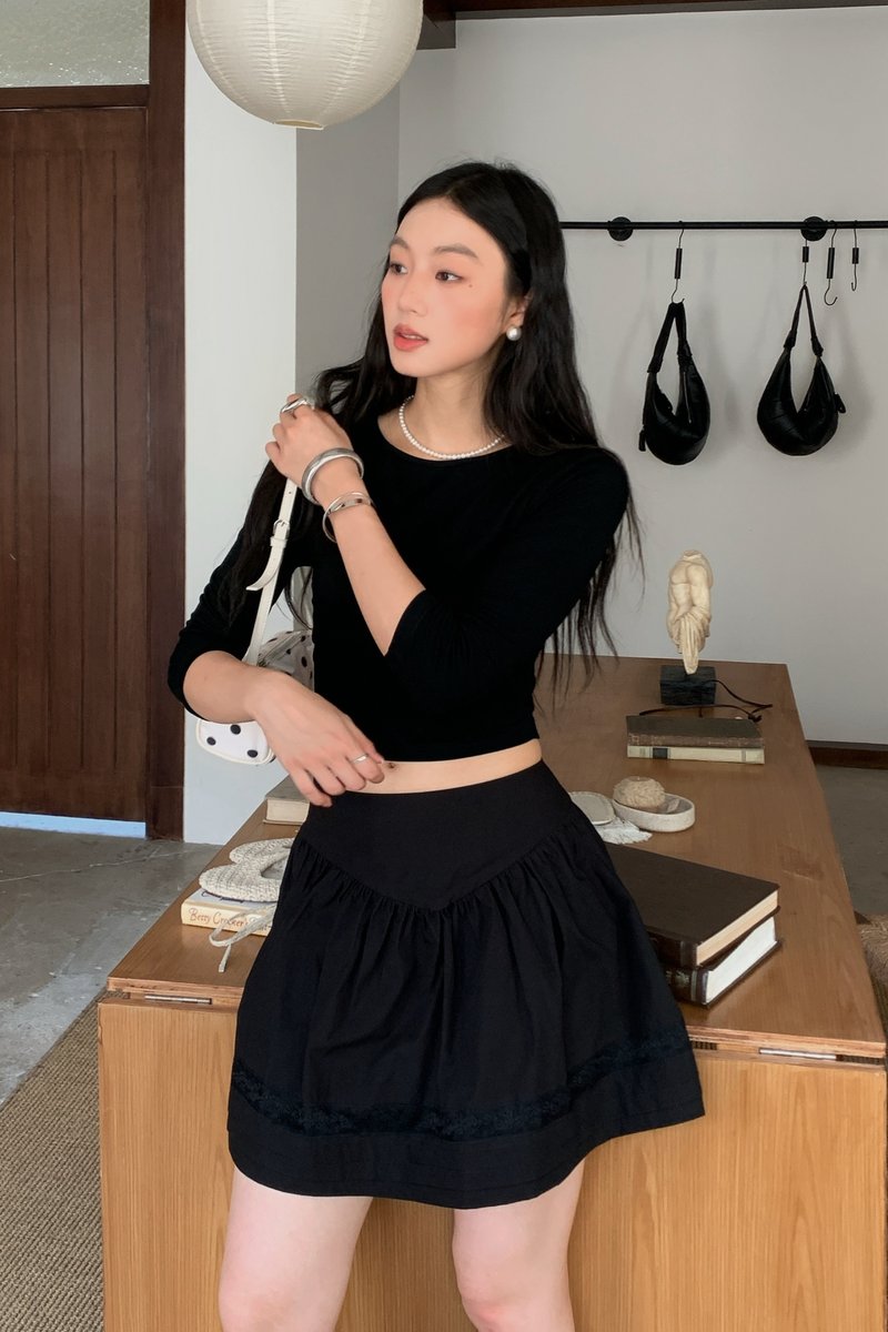 Shirring Culottes Skirt in Black