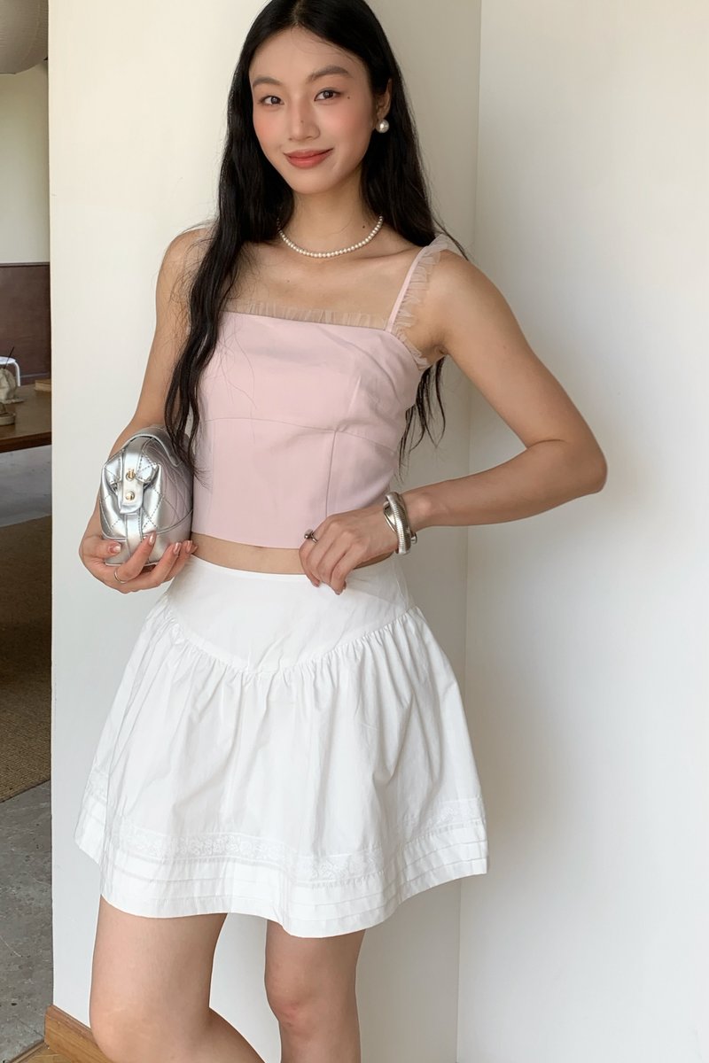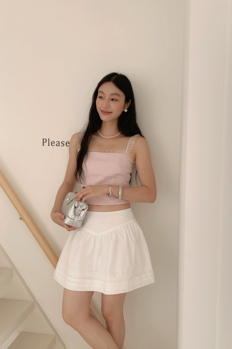 Shirring Culottes Skirt in White