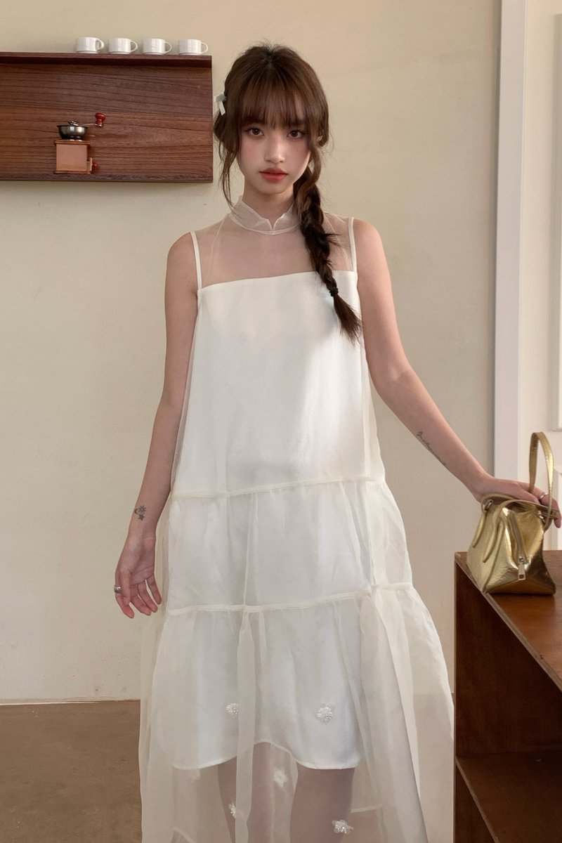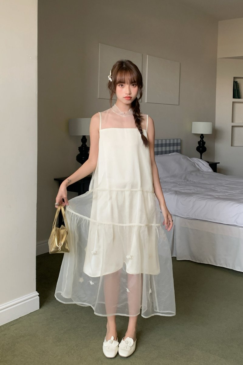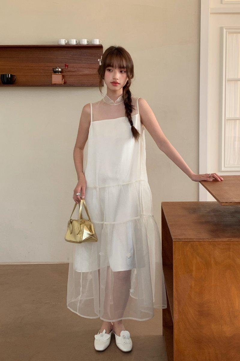 Xi Floral Chiffon Dress in Cream