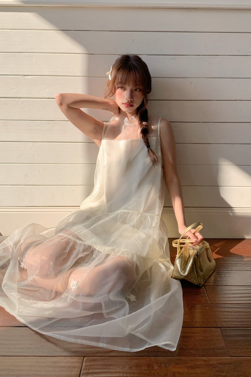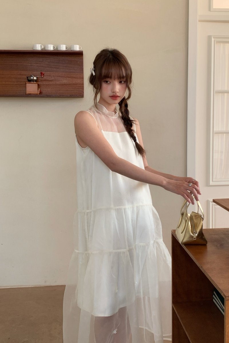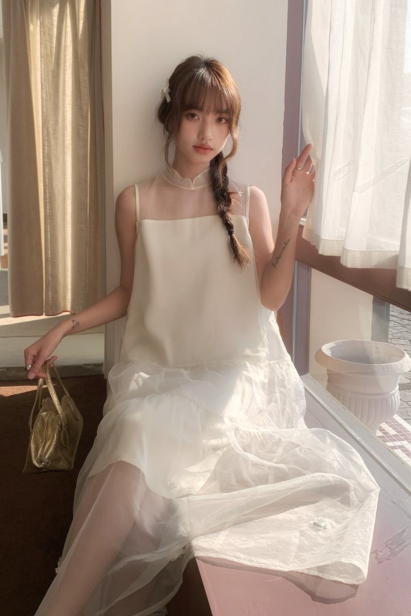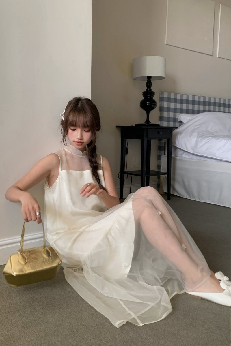 Xi Floral Chiffon Dress in Cream