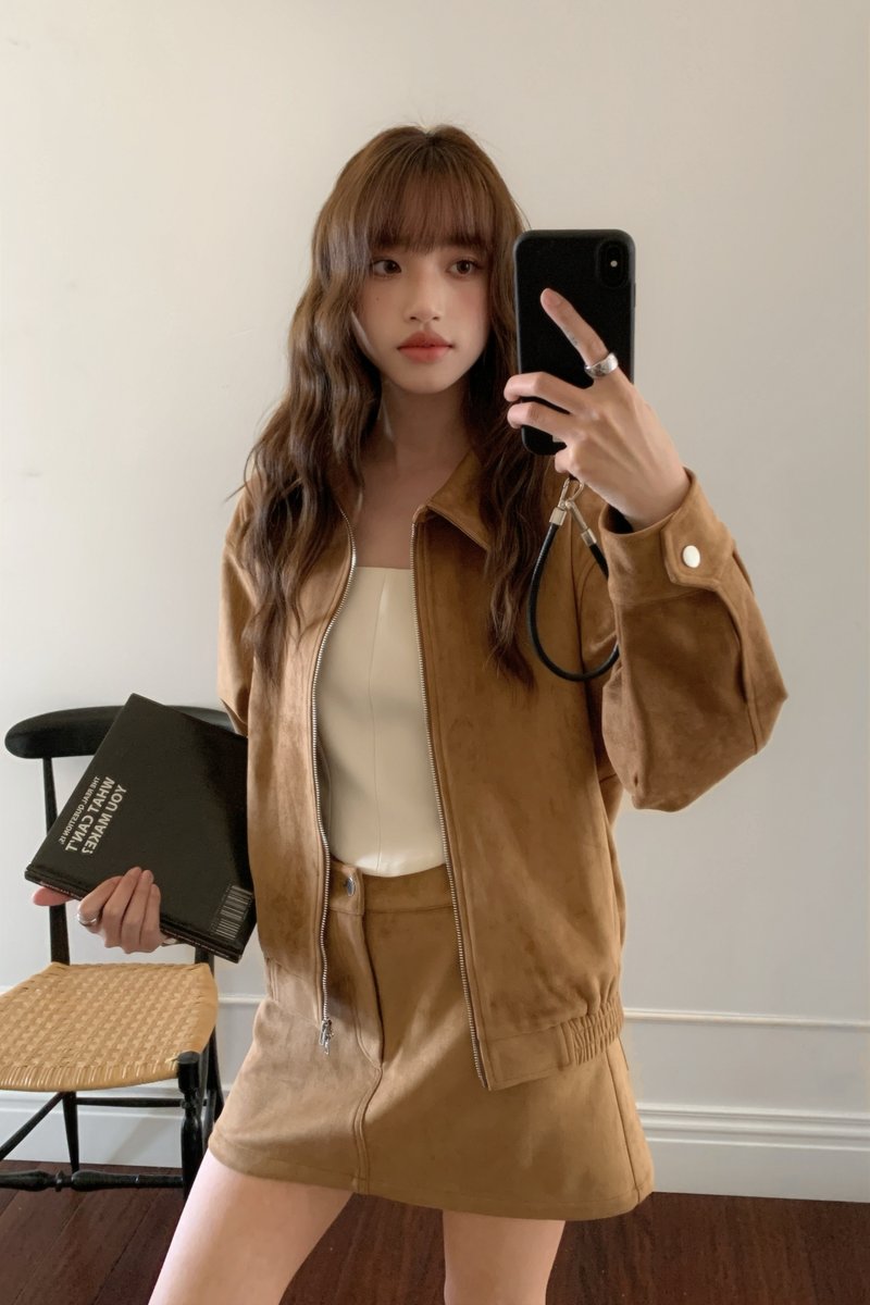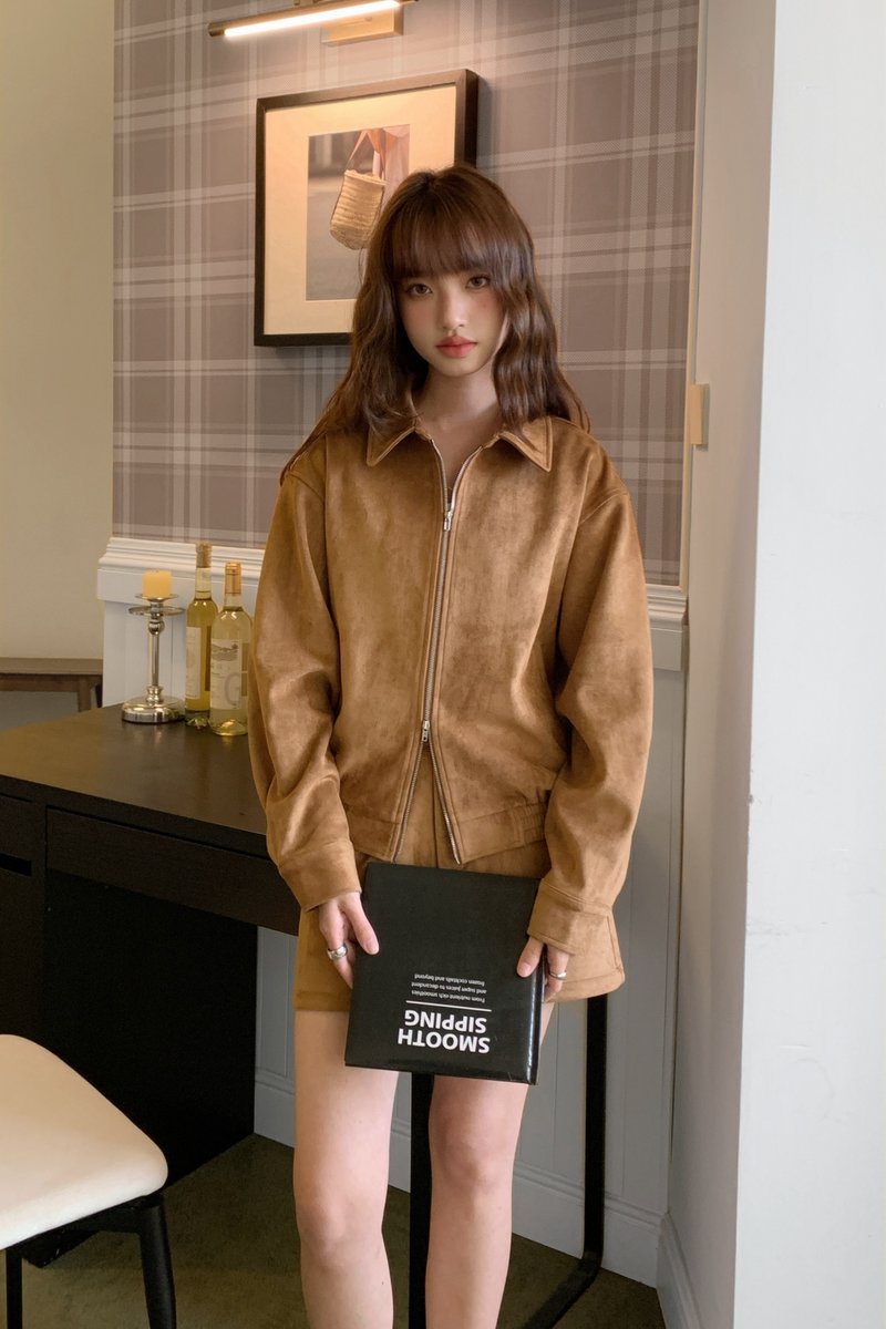 Molly Faux Suede Jacket in Mustard