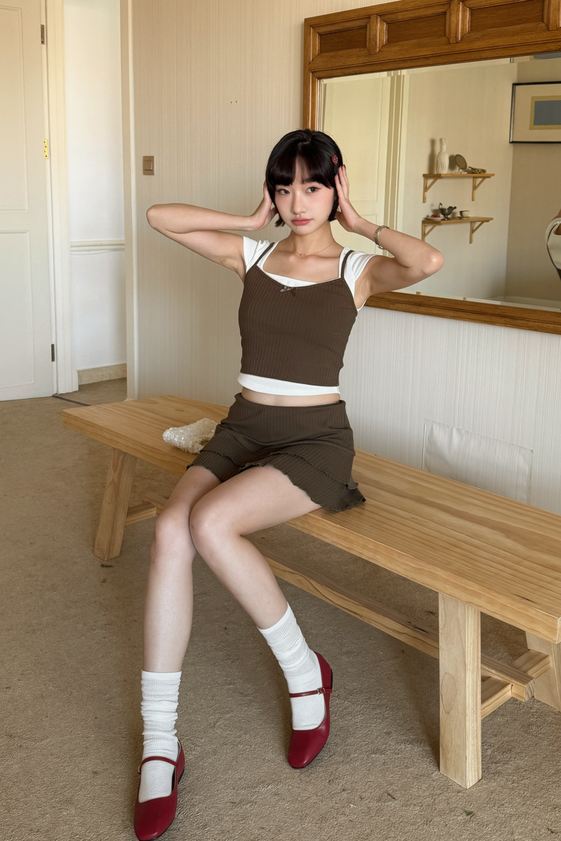 Model's size : Bust 29.5" , Waist 25.5", Hip 33.5" / Height 165cm / Weight 48kg